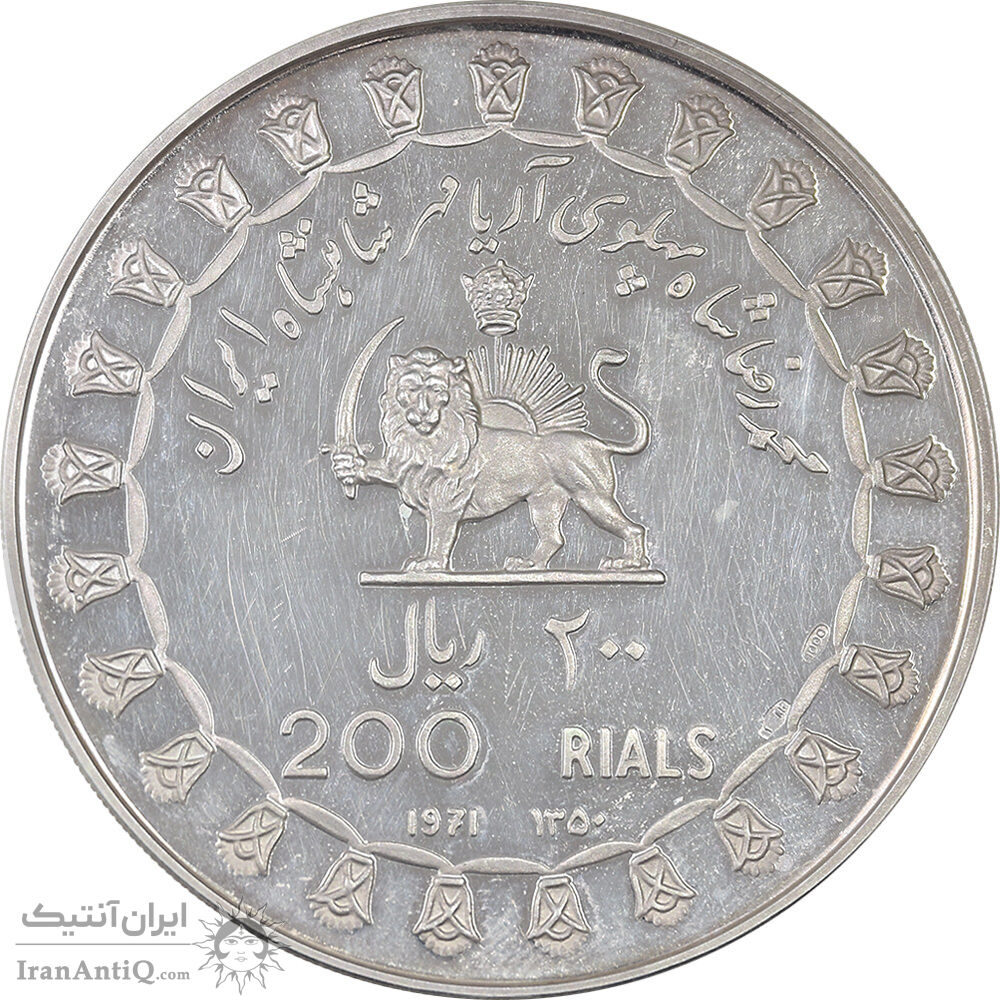 مدال نقره 200 ریال جشنهای 2500 ساله 1350 - PF62 - محمد رضا شاه