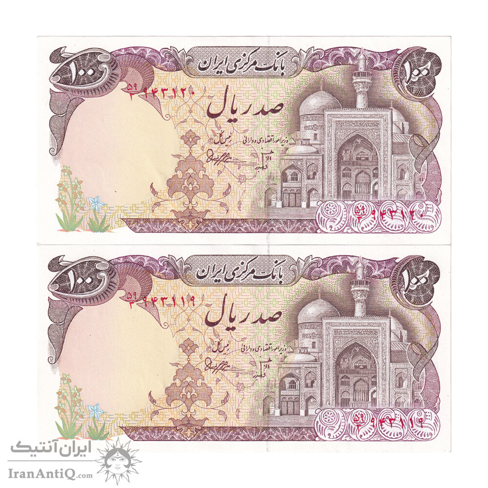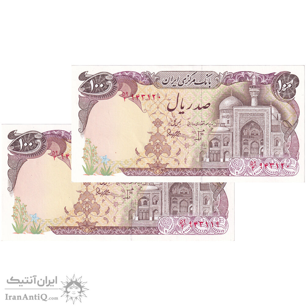 اسکناس 100 ریال (بنی صدر - نوبری) - جفت - AU55 - جمهوری اسلامی