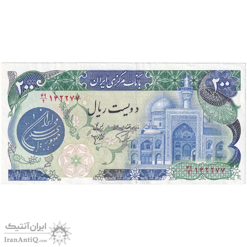 اسکناس 200 ریال (اردلان - مولوی) بدون فیلیگران - تک - AU53 - جمهوری اسلامی