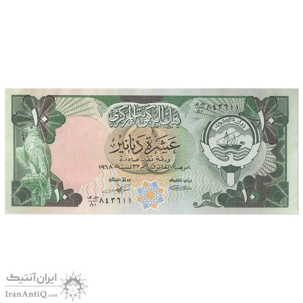 Kuwait 10 Dinars 1968 (1980-1991) banknote - AU58 - Jaber Al-Ahmad Al-Sabah