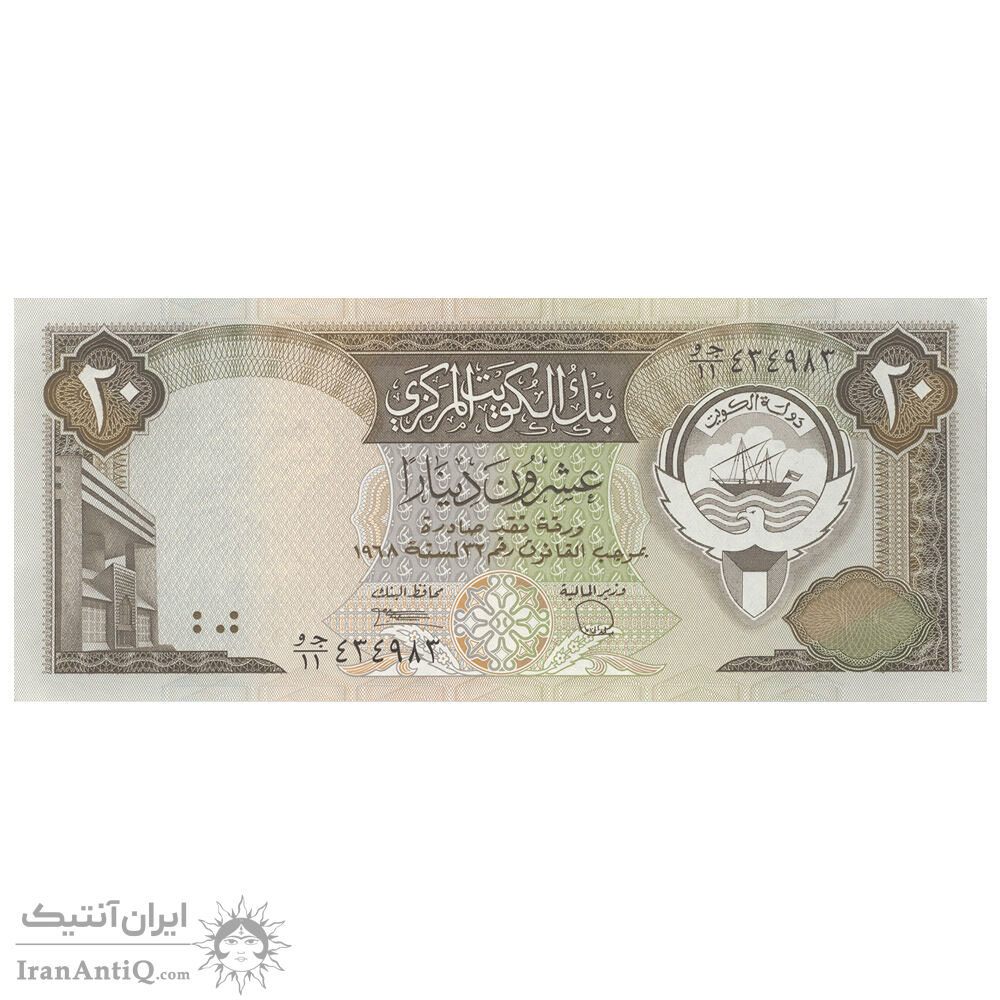 Kuwait 20 Dinars 1968 (1980-1991) banknote - AU58 - Jaber Al-Ahmad Al-Sabah