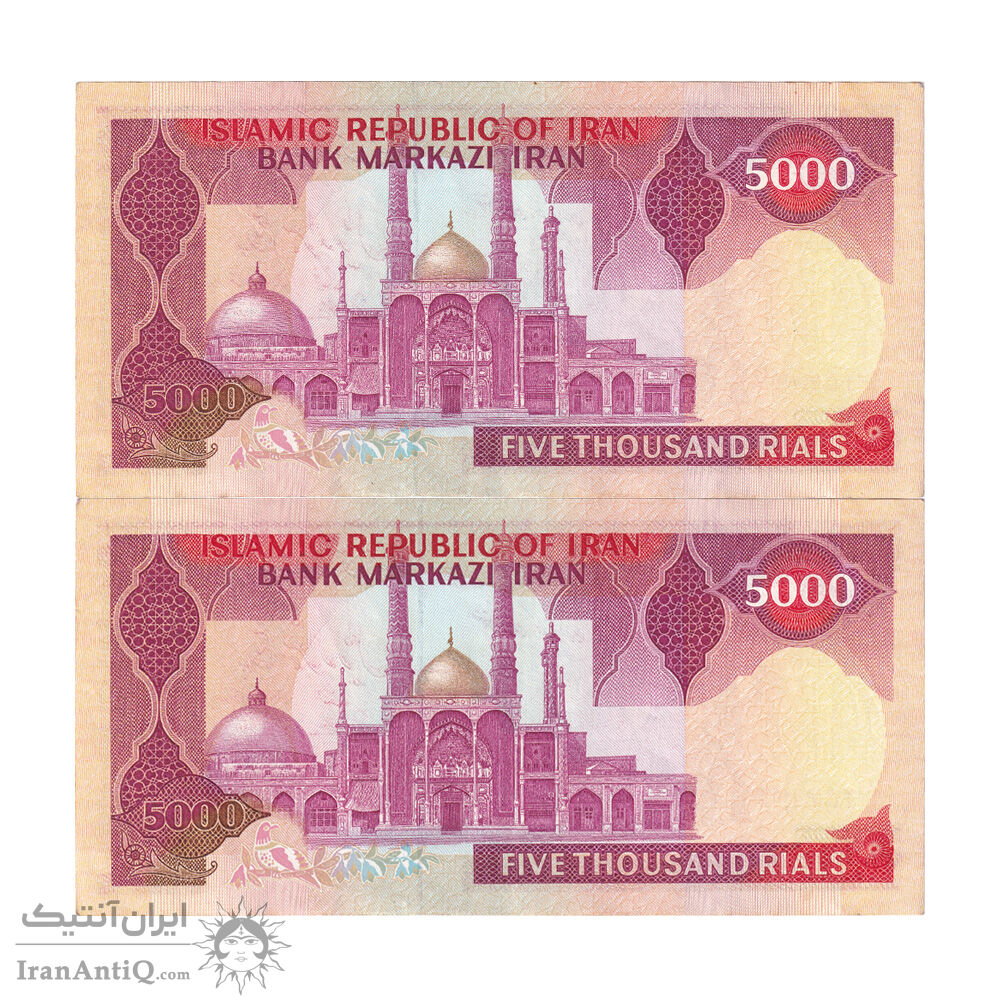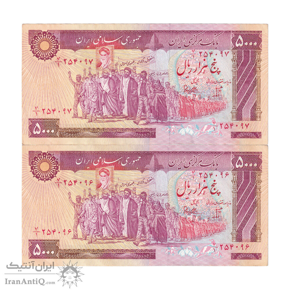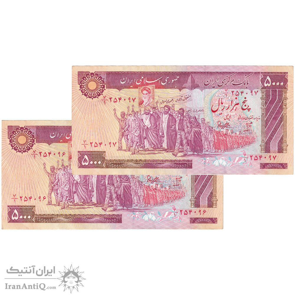 اسکناس 5000 ریال (بنی صدر - نوبری) - جفت - AU50 - جمهوری اسلامی