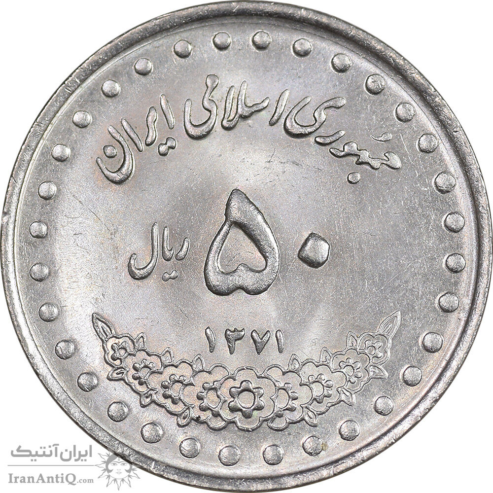 Iran 50 rials 1371 Coin - Small zero - MS63 - Islamic Republic