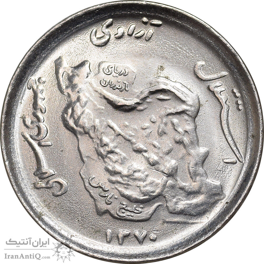 Iran 50 rials 1370 Coin - map in relief - MS63 - Islamic Republic
