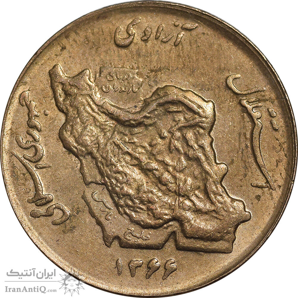 سکه 50 ریال 1366 - نوشته دریا ها برجسته - AU58 - جمهوری اسلامی