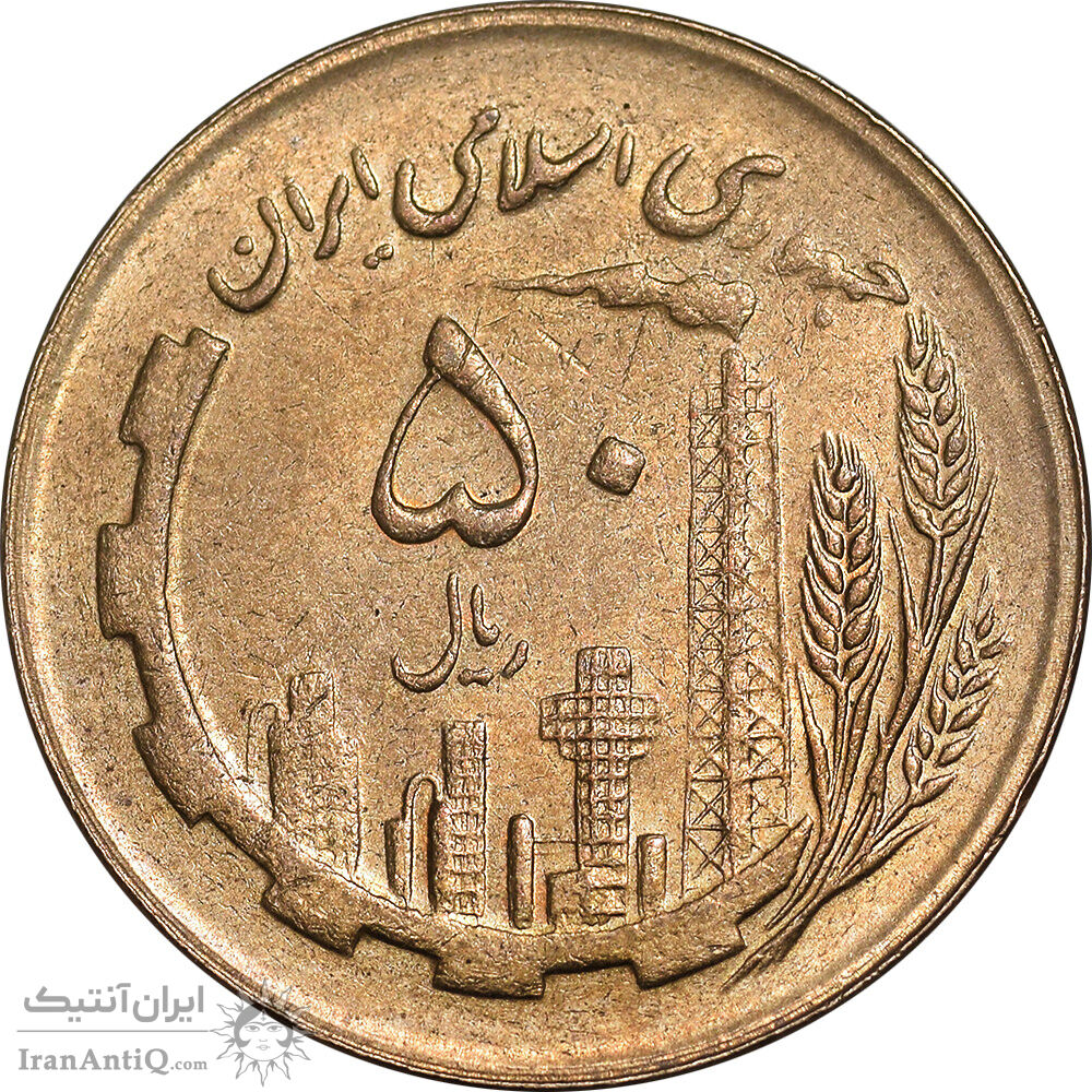 سکه 50 ریال 1366 - نوشته دریا ها برجسته - AU58 - جمهوری اسلامی