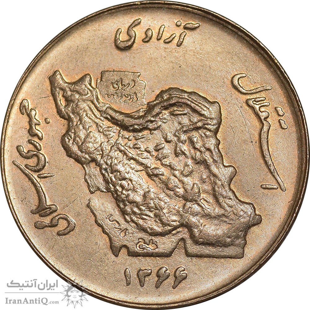 Iran 50 rials 1366 Coin - map incuse - AU58 - Islamic Republic