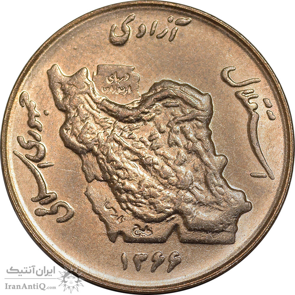 Iran 50 rials 1366 Coin - map incuse - MS62 - Islamic Republic