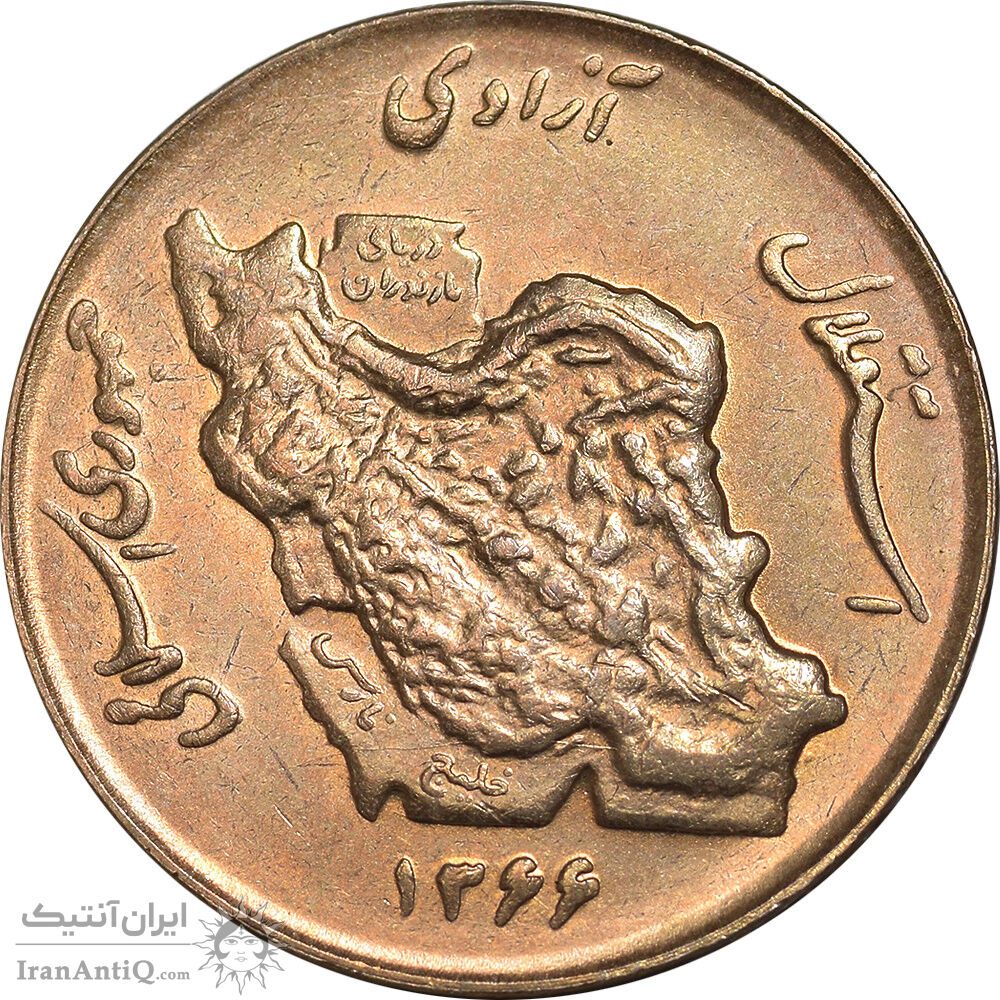 Iran 50 rials 1366 Coin - map in relief - MS63 - Islamic Republic