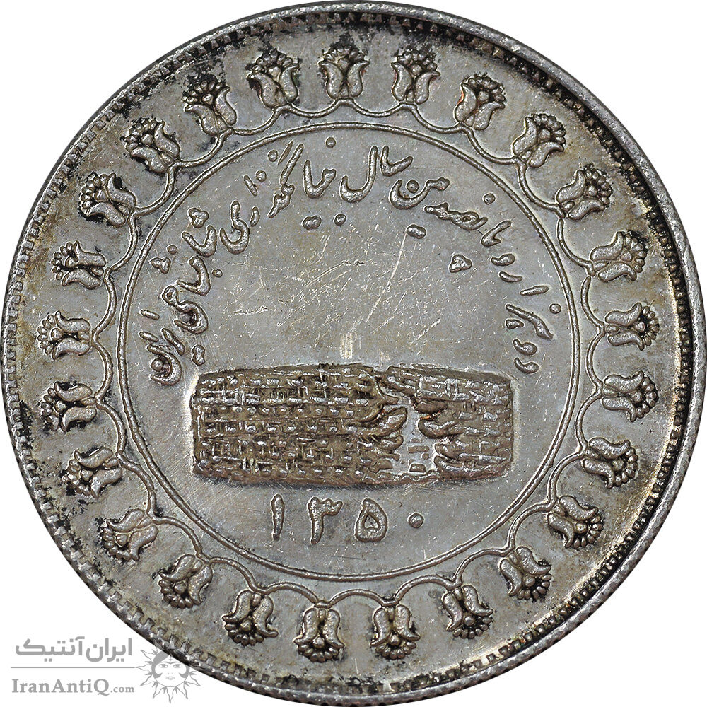 مدال یادبود نقره منشور کوروش بزرگ 1350 - AU - محمد رضا شاه