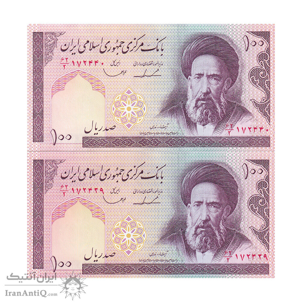 اسکناس 100 ریال (ایروانی - قاسمی) - جفت - UNC62 - جمهوری اسلامی