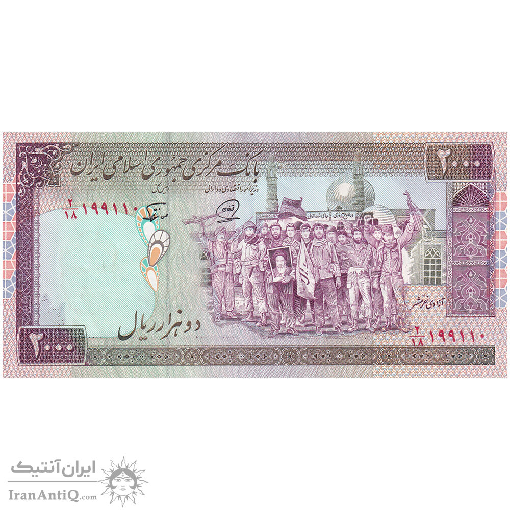 اسکناس 2000 ریال (محمدخان - نوربخش) شماره بزرگ - نخ کامپیوتری - تک - AU55 - جمهوری اسلامی