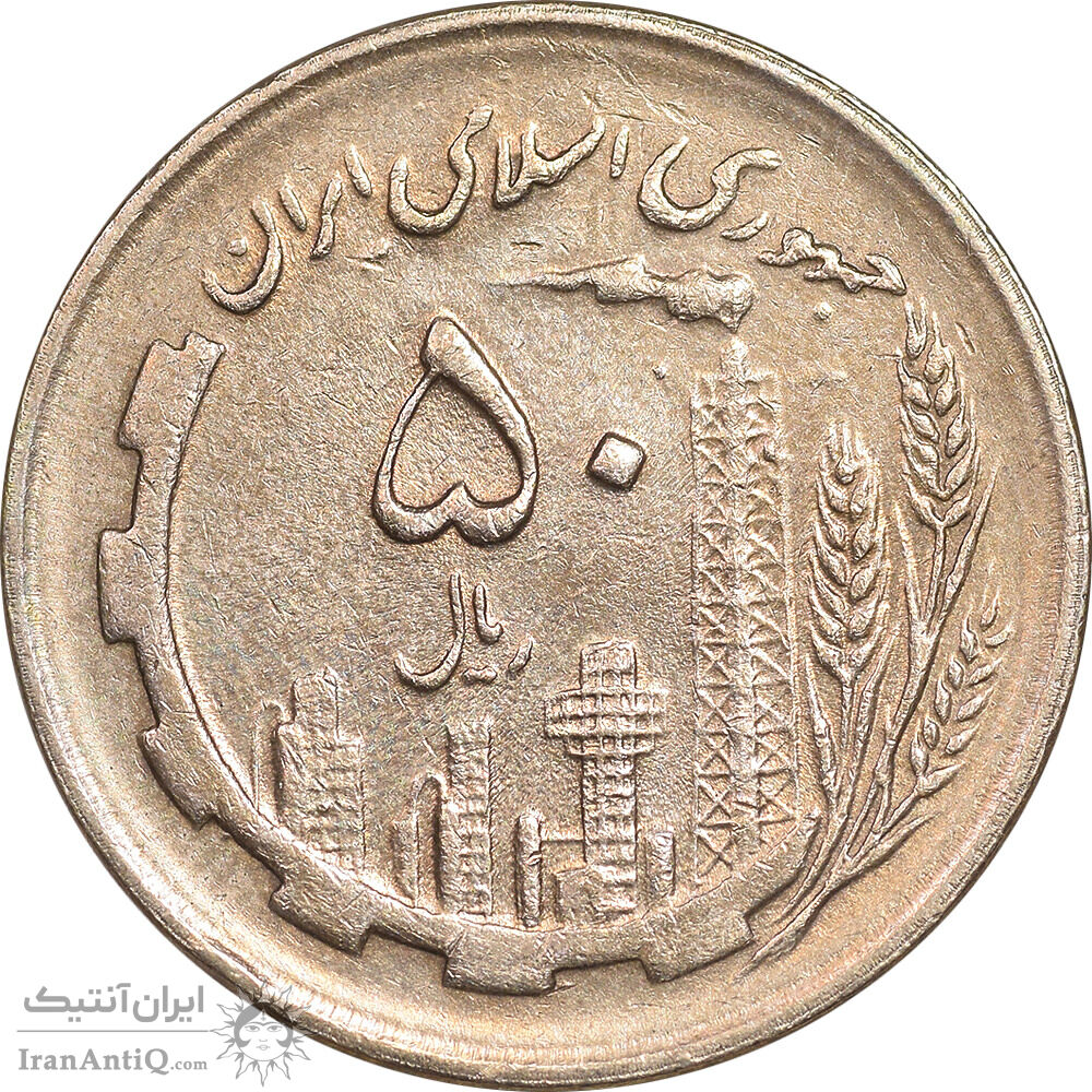 Iran 50 rials 1361 Jomhouri in edge Coin - Small zero - EF45 - Islamic Republic