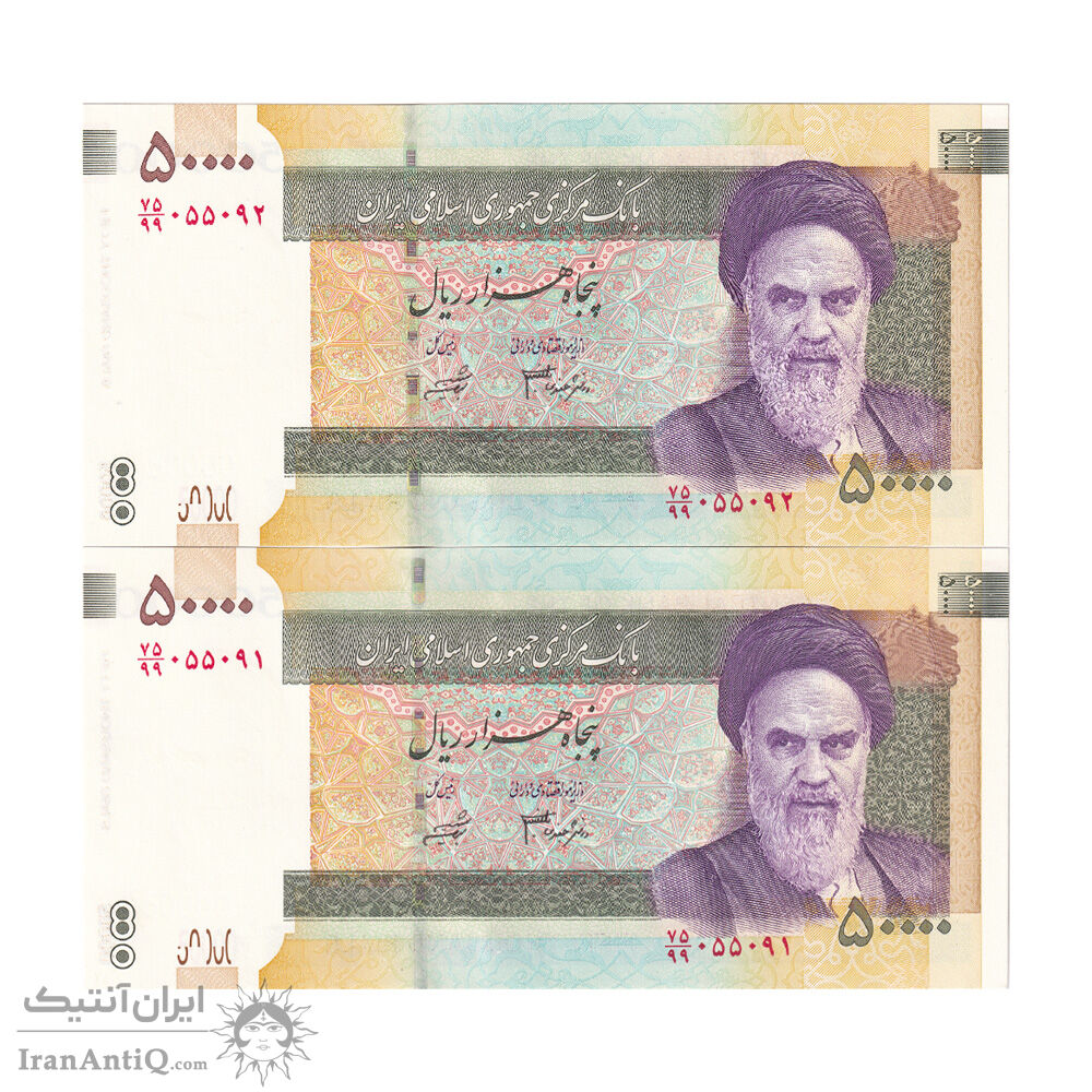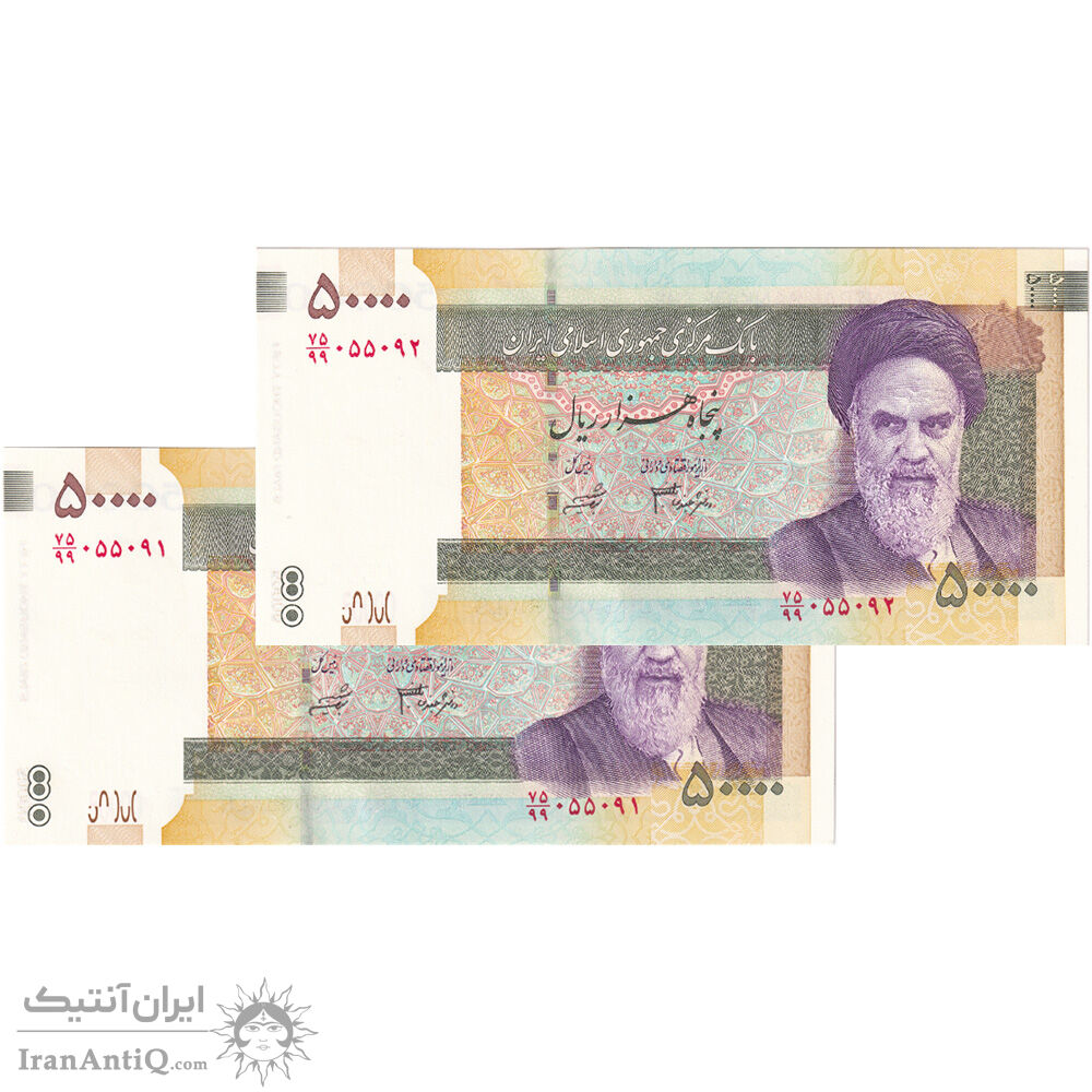 اسکناس 50000 ریال (جعفری - شیبانی) فیلیگران 50000 بزرگ - جایگزین - جفت - UNC64 - جمهوری اسلامی