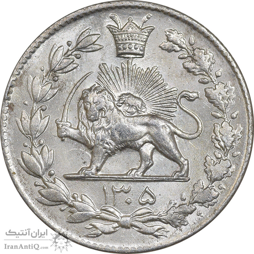 Iran 2000 dinars 1305 coin - MS62 - reza shah pahlavi