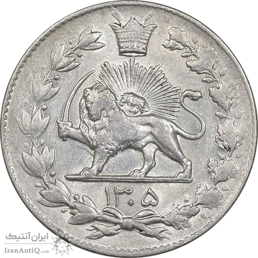 سکه 2000 دینار 1305 رایج - AU55 - رضا شاه