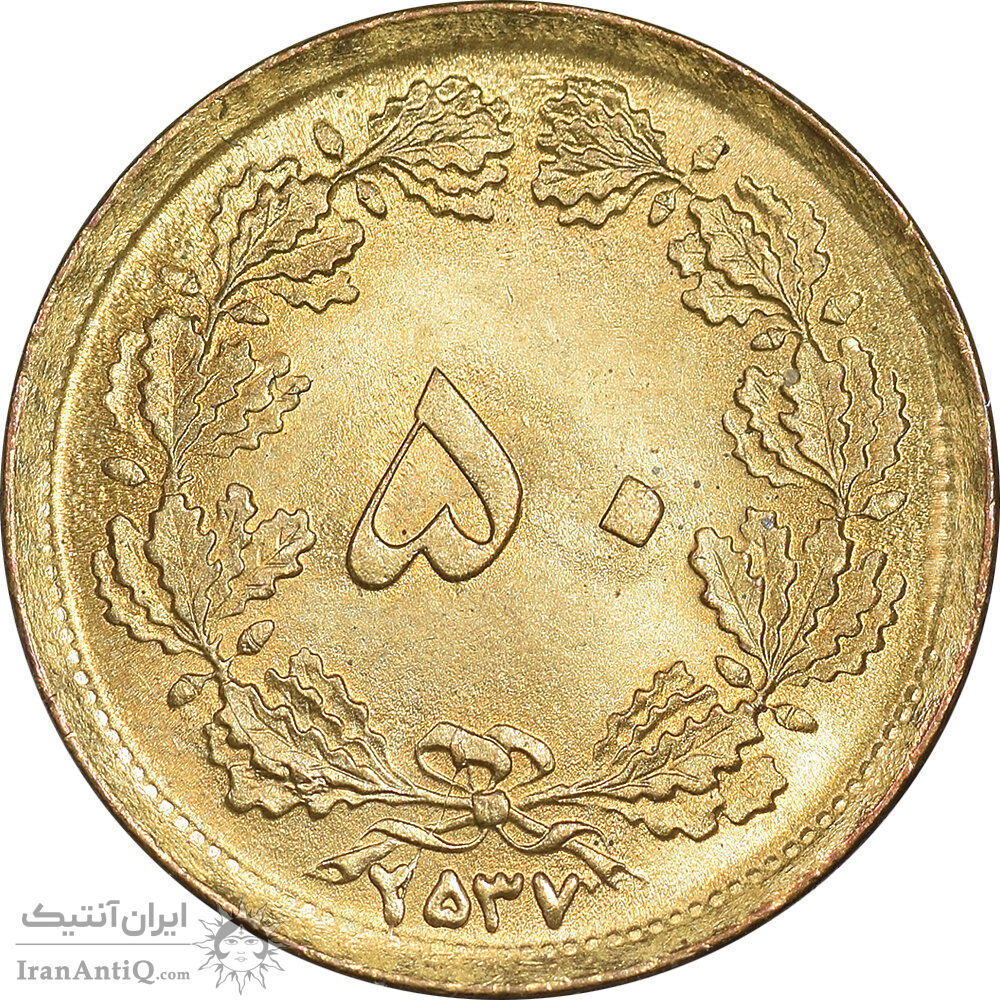 iran 50 dinars 2537 coin - MS64 - mohammad reza shah
