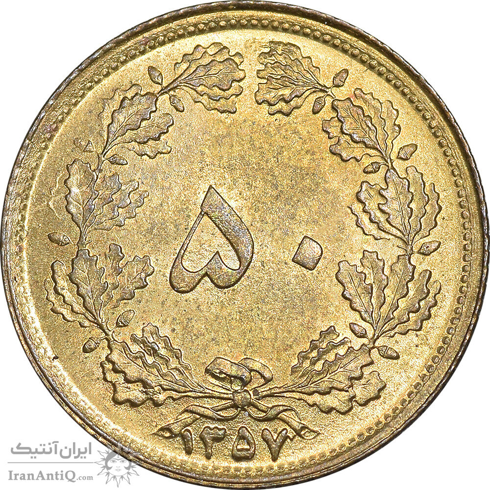 iran 50 dinars 1357 coin - MS63 - mohammad reza shah
