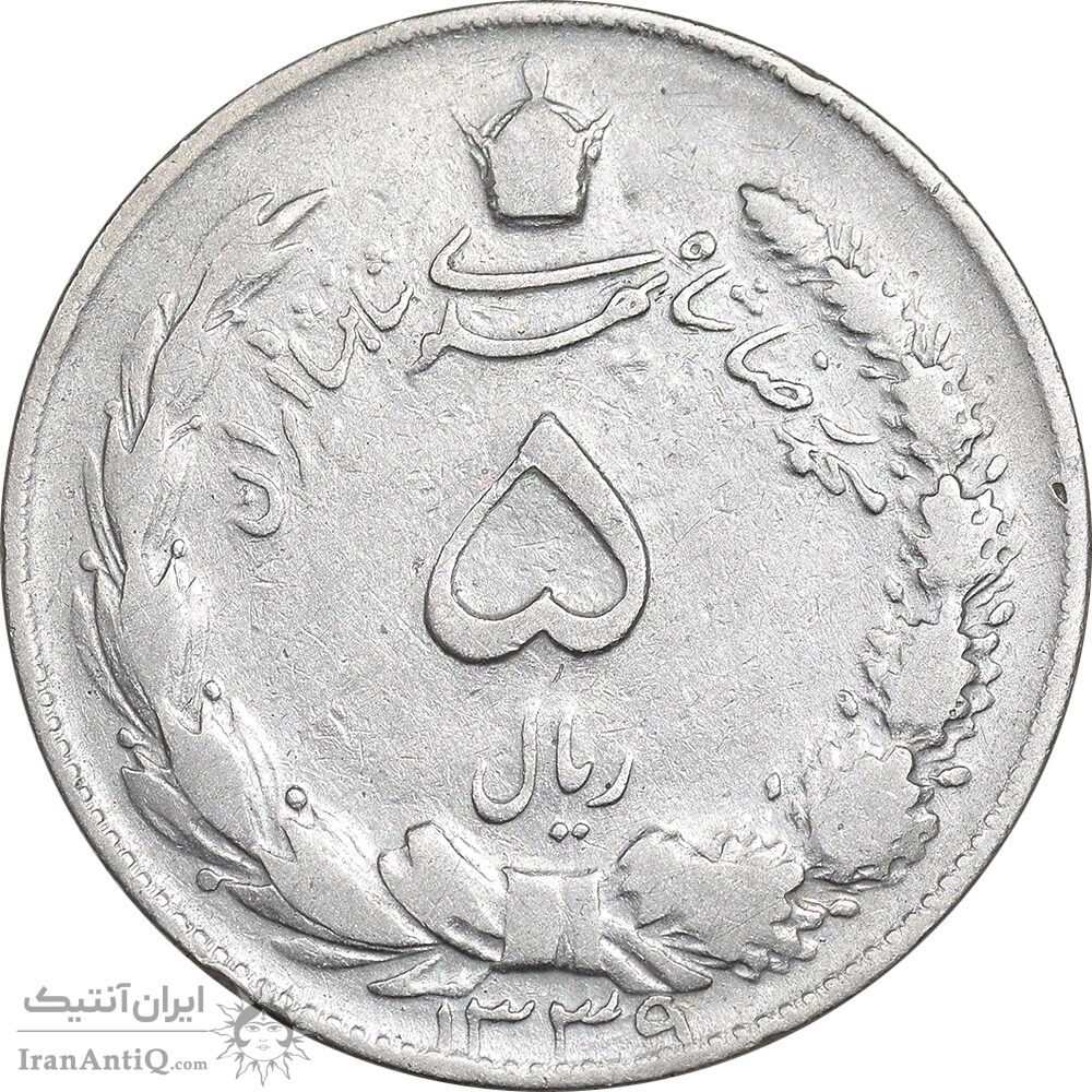 سکه 5 ریال 1339 - VF25 - محمد رضا شاه