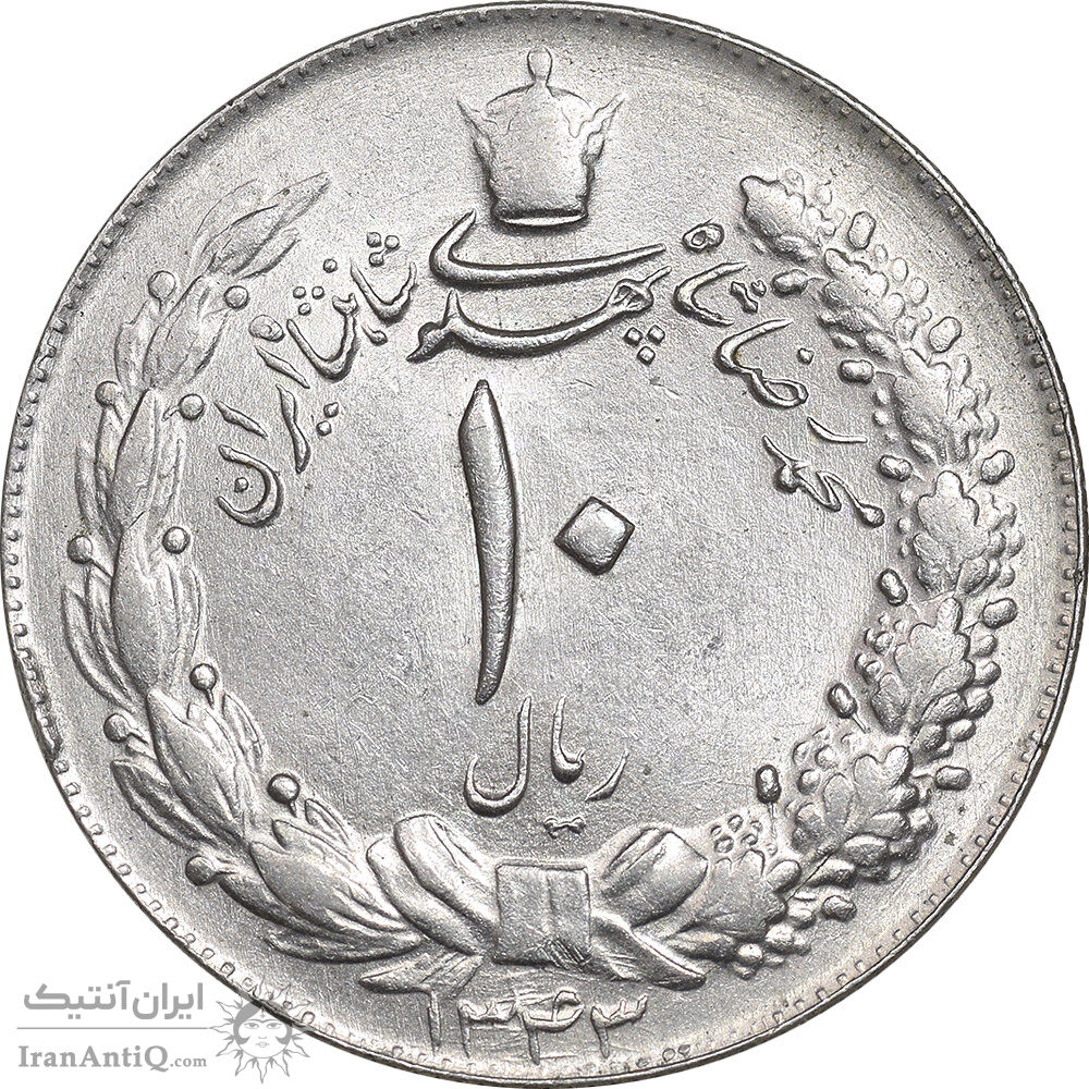 Iran 10 rials 1343 coin - Thick - MS62 - mohammad reza shah