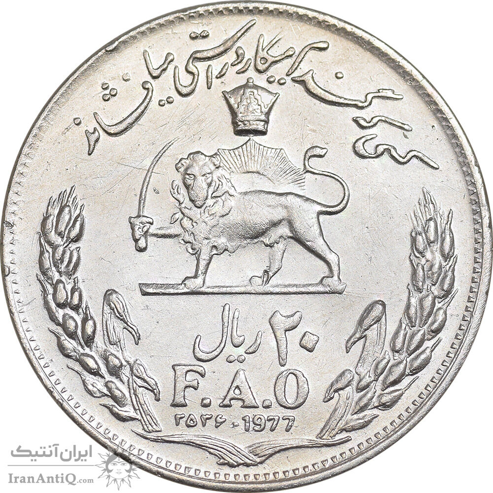 سکه 20 ریال 2536 فائو گندم - EF45 - محمد رضا شاه