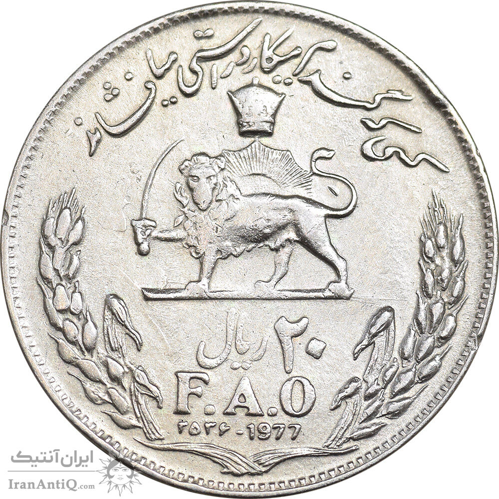 سکه 20 ریال 2536 فائو گندم - EF40 - محمد رضا شاه