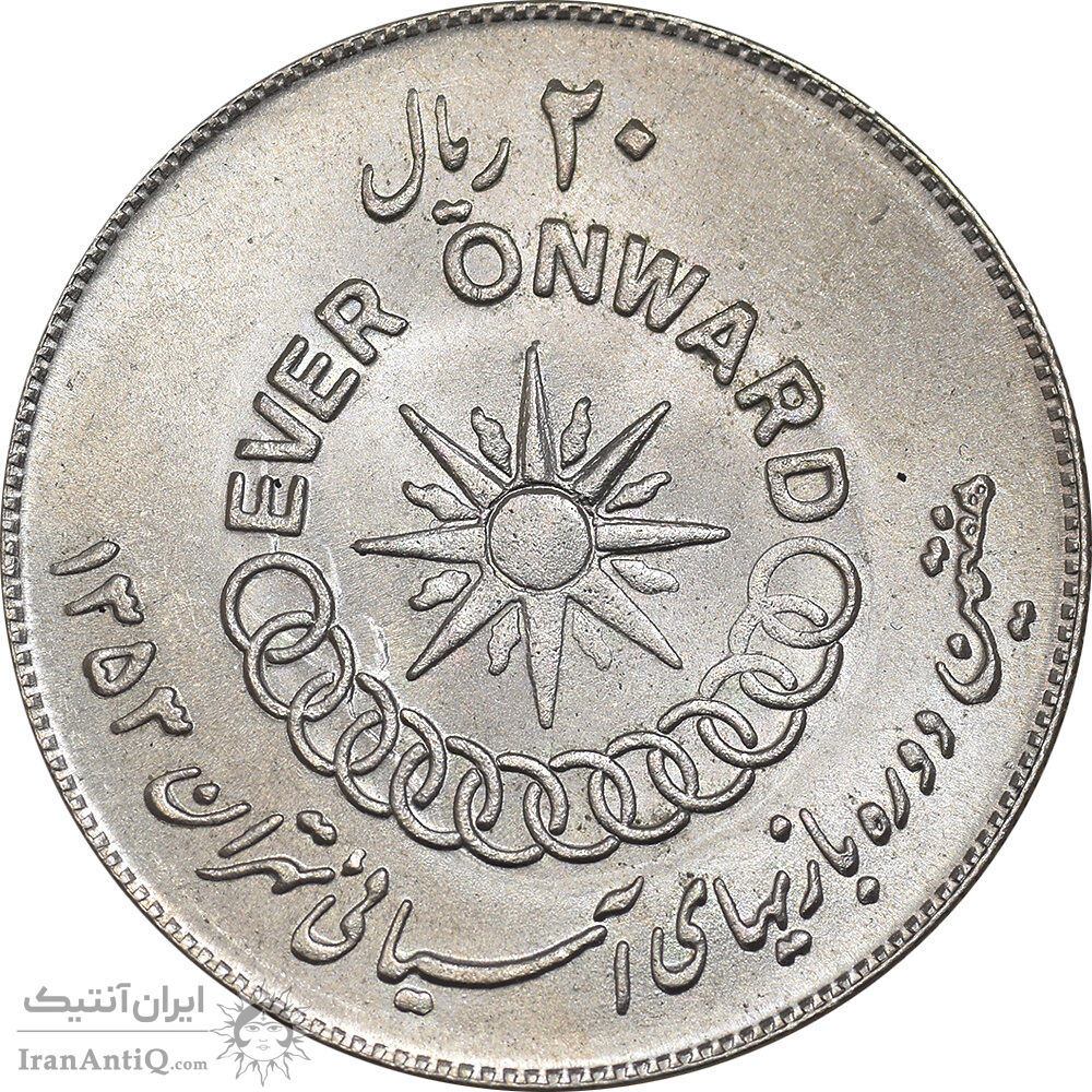 سکه 20 ریال 1353 بازی های آسیایی - MS63 - محمد رضا شاه