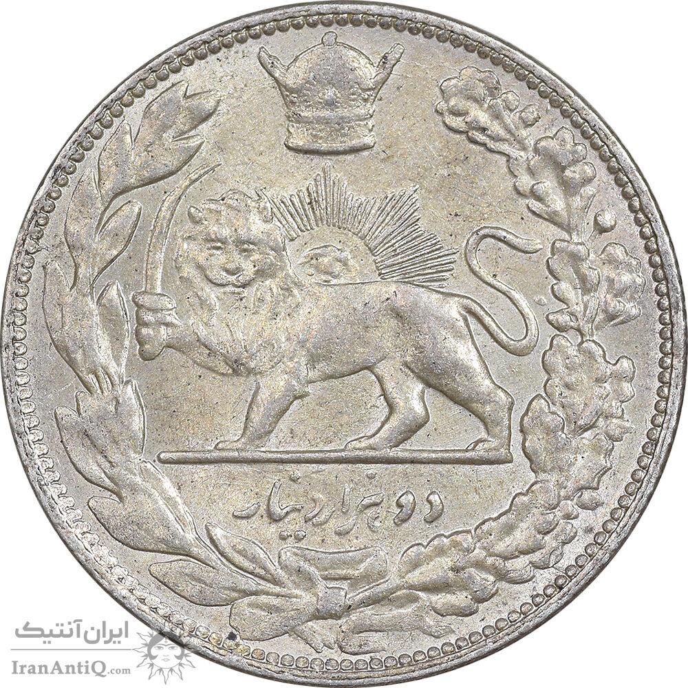 سکه 2000 دینار 1306 تصویری - ضرب تهران - AU58 - رضا شاه