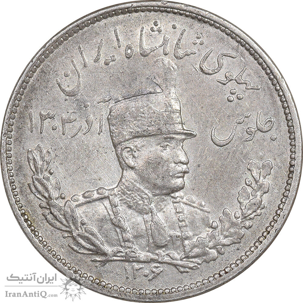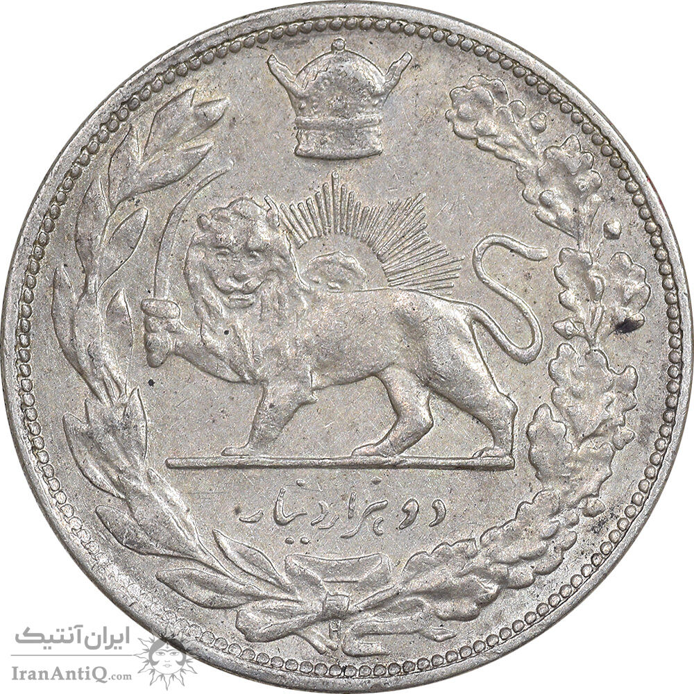 سکه 2000 دینار 1306 تصویری - ضرب هیتون - AU50 - رضا شاه