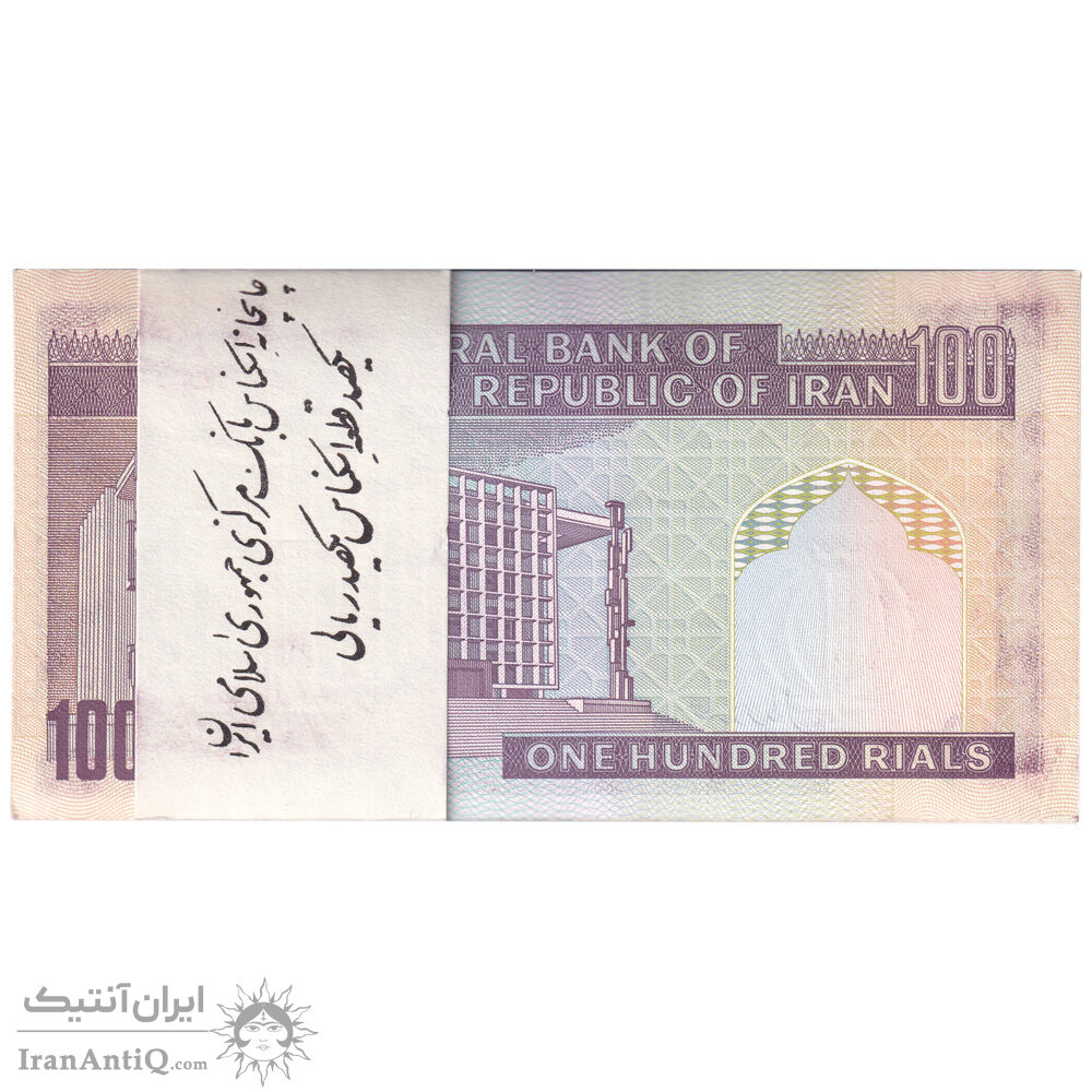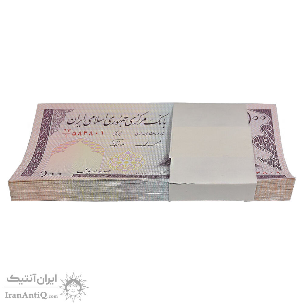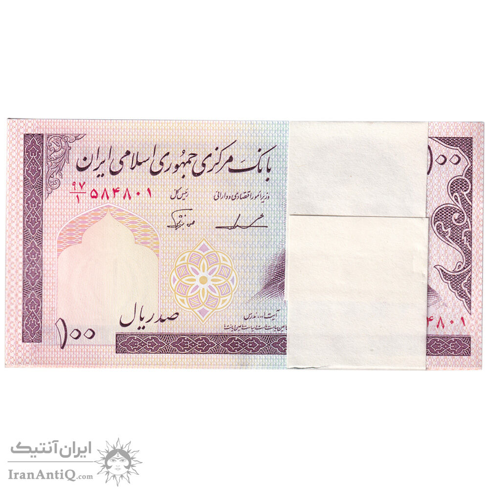 بسته اسکناس 100 ریال (ایروانی - نوربخش) - شماره سه قلو کاهشی - UNC - جمهوری اسلامی