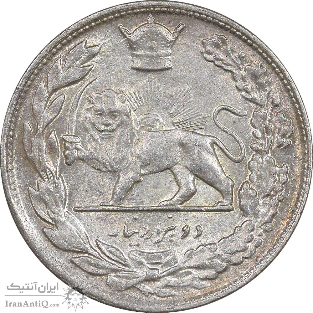 سکه 2000 دینار 1308 تصویری - AU55 - رضا شاه