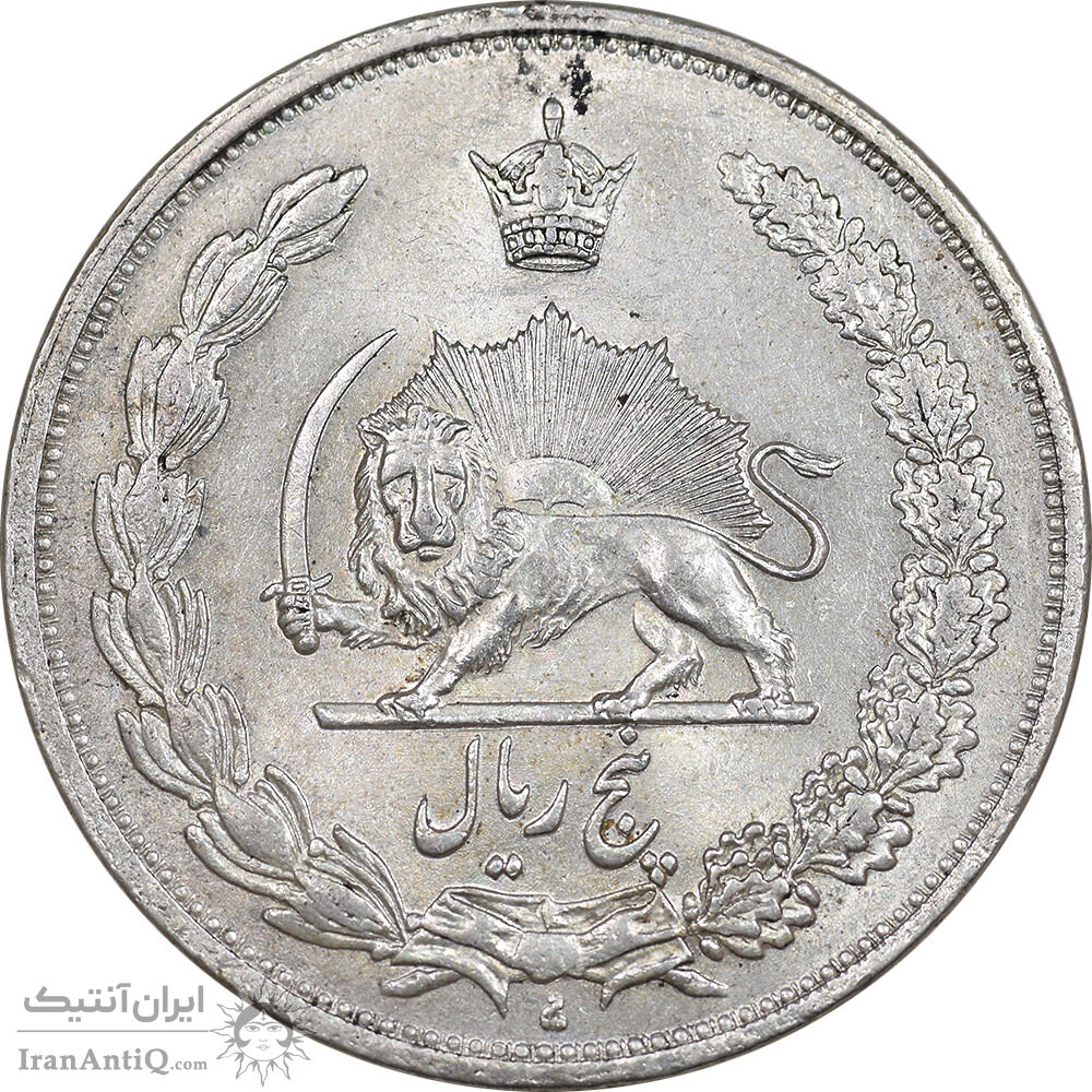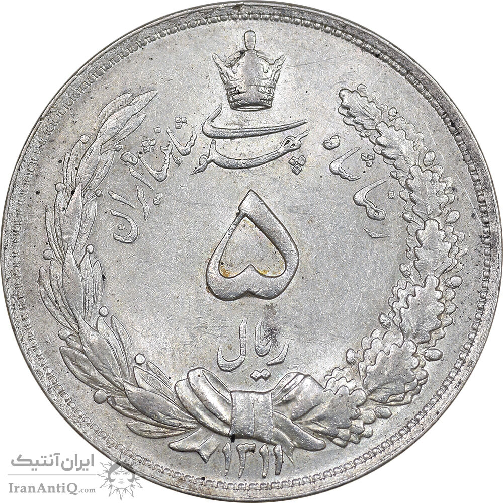 Iran 5 rials 1311 coin - AU55 - reza Shah pahlavi