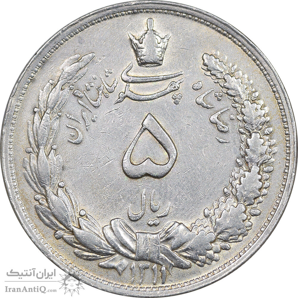 Iran 5 rials 1311 coin - AU50 - reza Shah pahlavi
