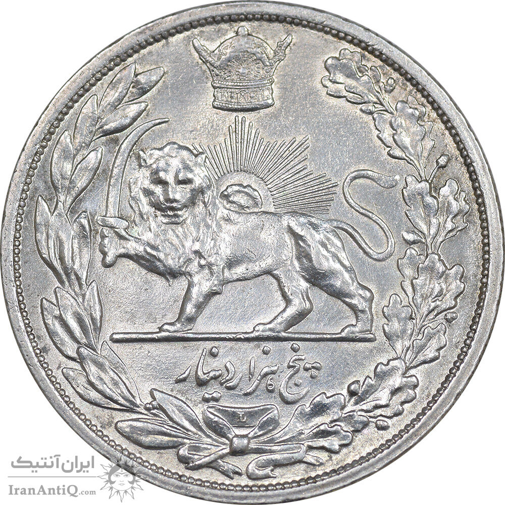 سکه 5000 دینار 1306 تصویری - ضرب لنینگراد - AU50 - رضا شاه
