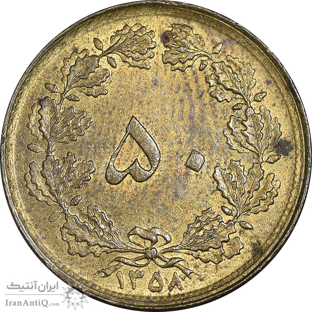 سکه 50 دینار 1358 - چرخش 180 درجه - MS61 - جمهوری اسلامی