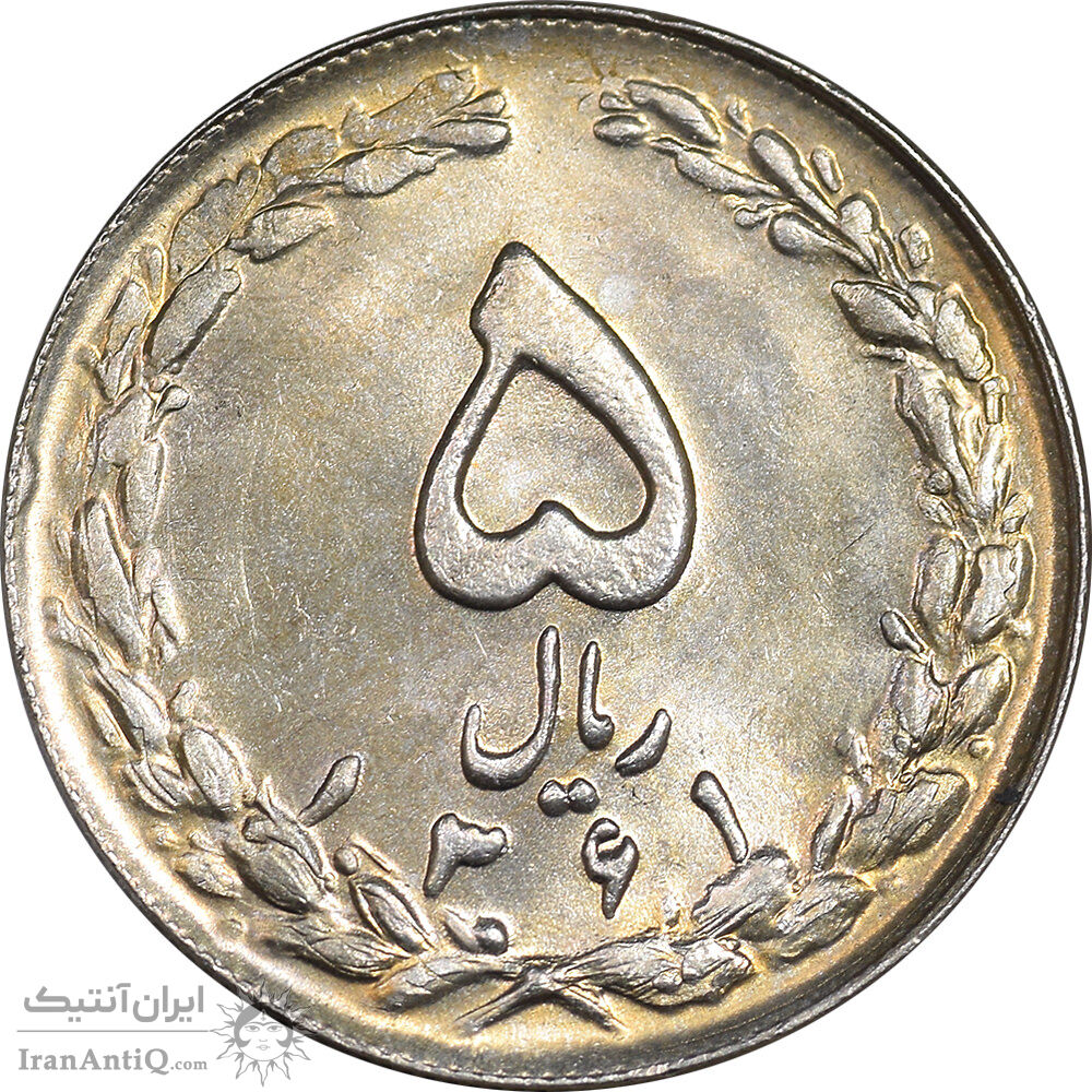 سکه 5 ریال 1361 تاریخ بزرگ - پرسی - MS63 - جمهوری اسلامی