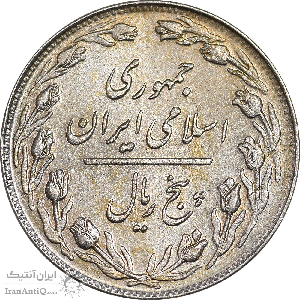 سکه 5 ریال 1361 تاریخ کوچک - 1 بلند - پرسی - AU58 - جمهوری اسلامی