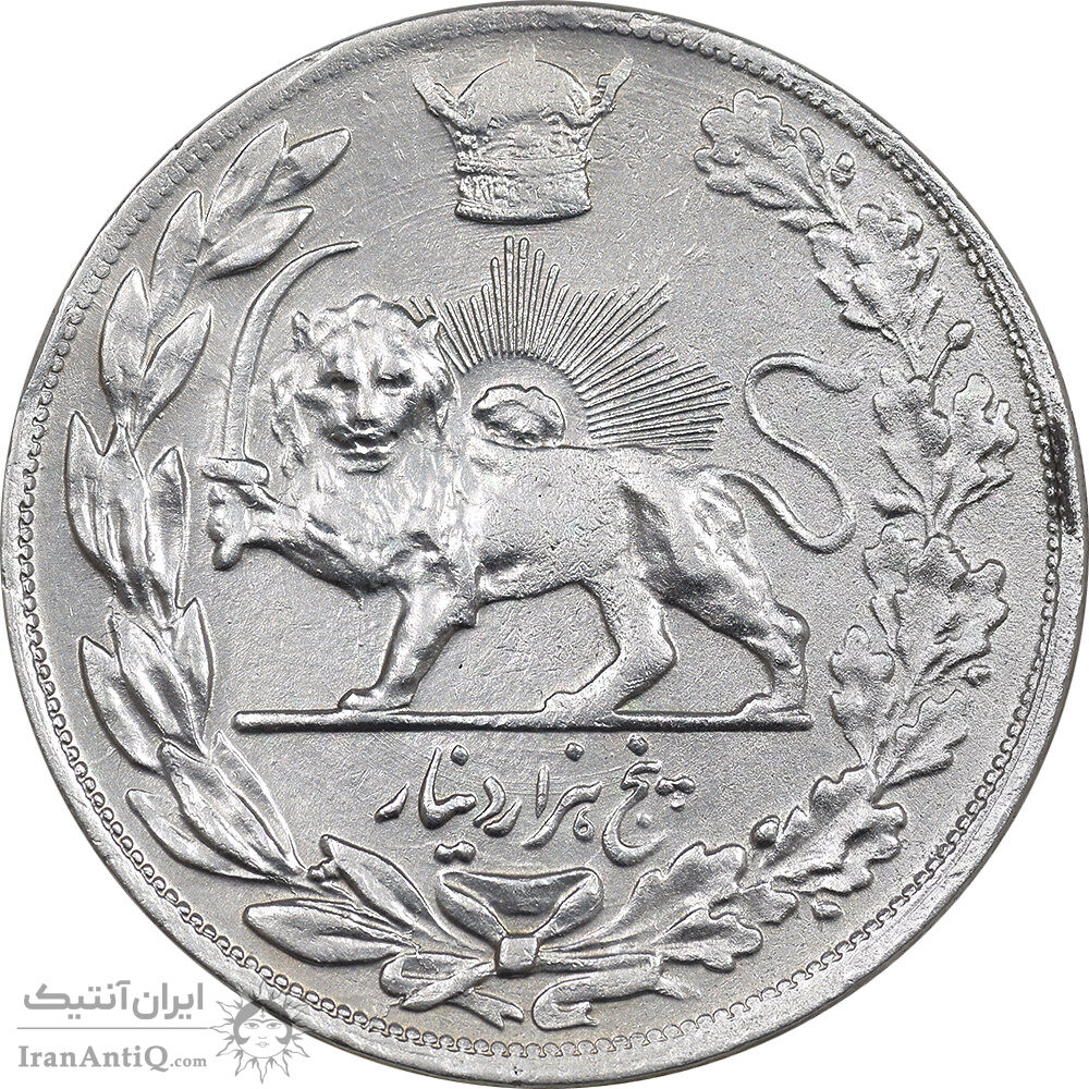 Iran 5000 dinars 1308 coin - EF45 - reza Shah pahlavi