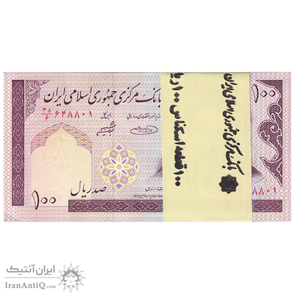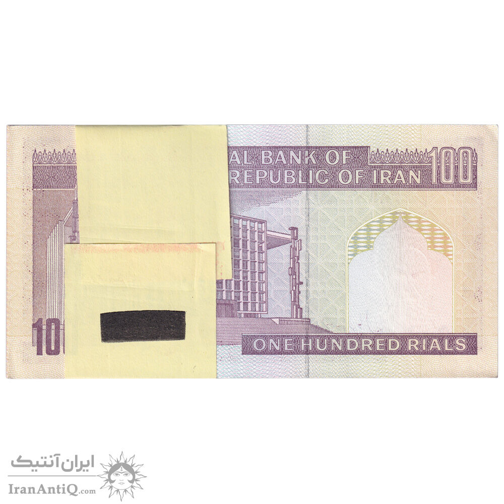 بسته اسکناس 100 ریال (حسینی - شیبانی) شماره قرینه - UNC - جمهوری اسلامی
