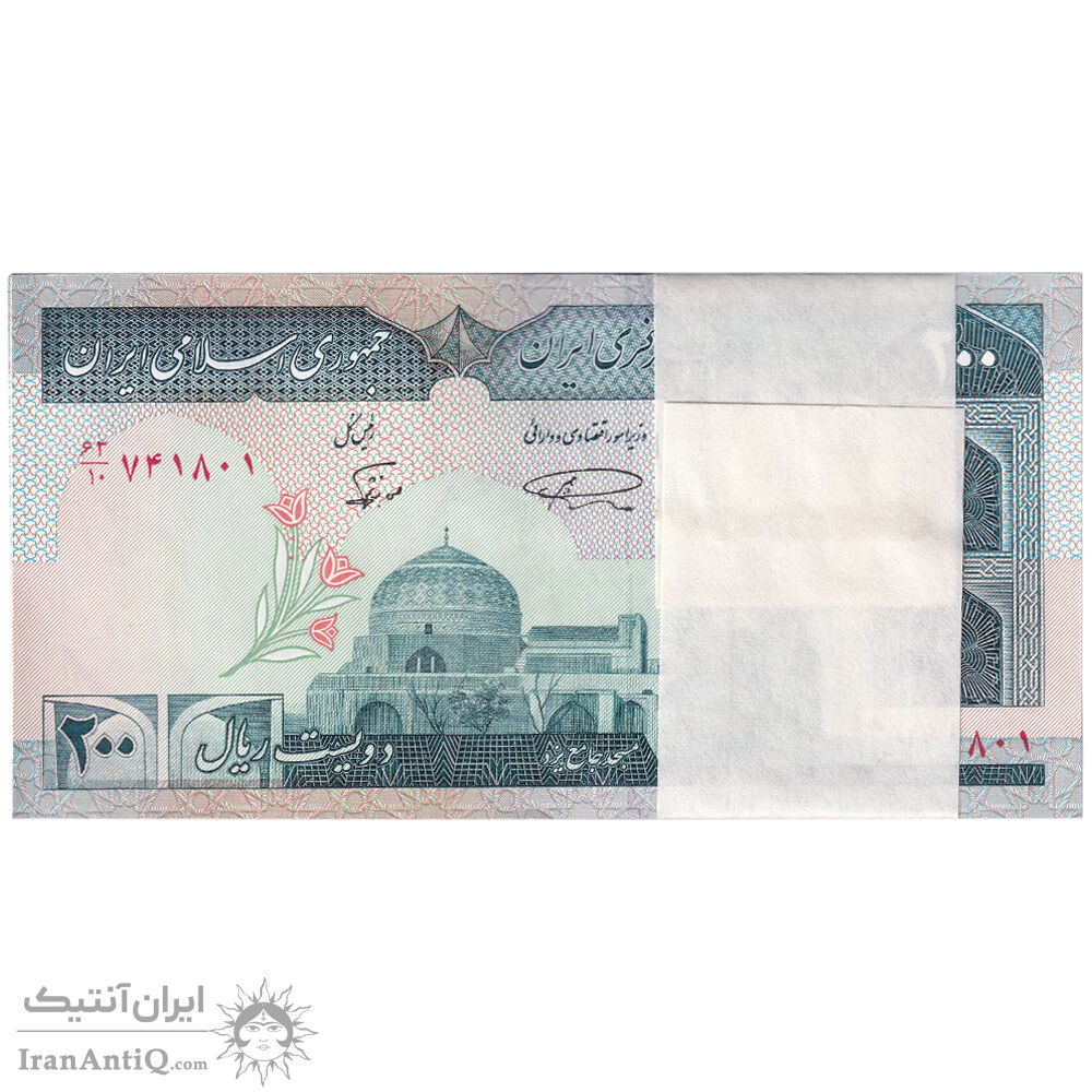 بسته اسکناس 200 ریال (نمازی - نوربخش) فیلیگران الله - شماره کوچک - UNC - جمهوری اسلامی