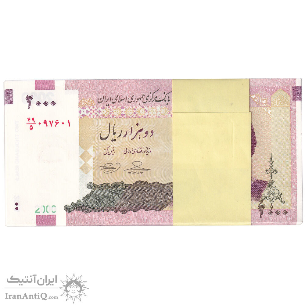 بسته اسکناس 2000 ریال (حسینی - بهمنی) - UNC - جمهوری اسلامی