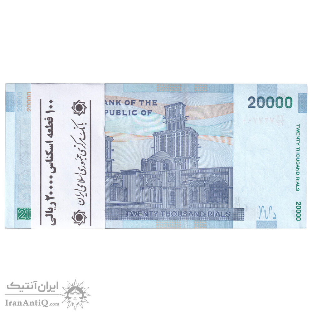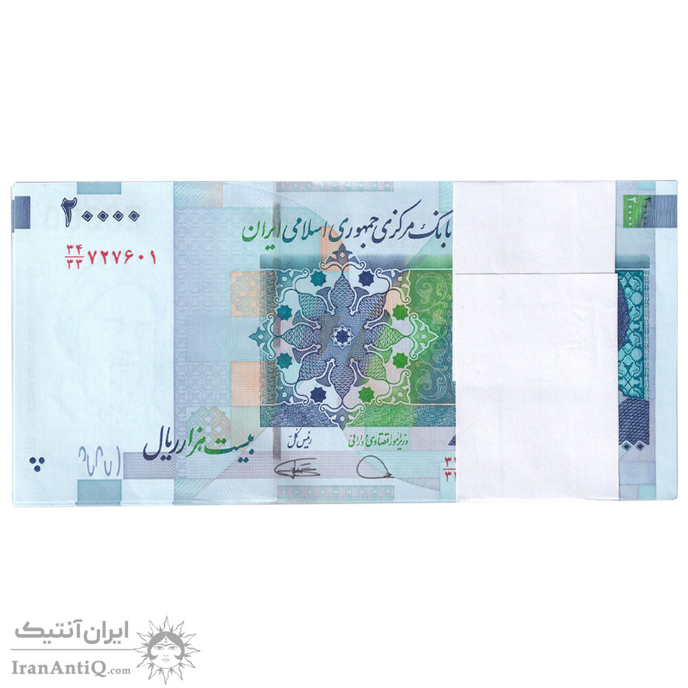 بسته اسکناس 20000 ریال (دژپسند - کمیجانی) نخ نوع 1 - جایگزین - UNC - جمهوری اسلامی
