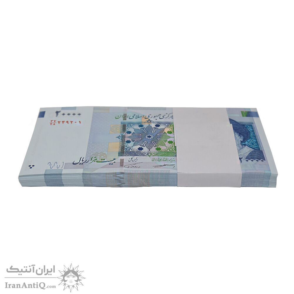 بسته اسکناس 20000 ریال (کرباسیان - همتی) نخ نوع 1 - شماره دوقلو - UNC - جمهوری اسلامی
