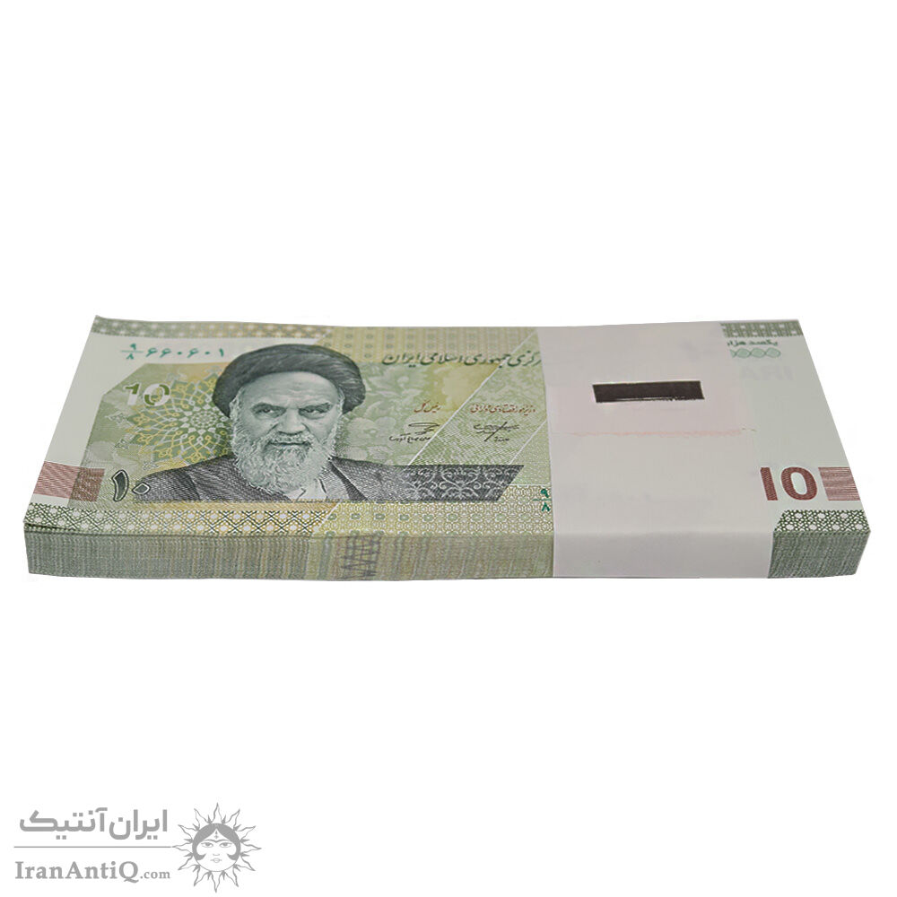 بسته اسکناس 100000 ریال (خاندوزی - صالح آبادی) شماره مزاحم - UNC - جمهوری اسلامی