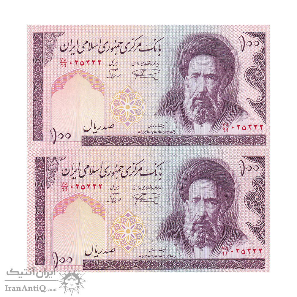 اسکناس 100 ریال (نمازی - نوربخش) شماره کوچک - فیلیگران الله - جایگزین - جفت - UNC63 - جمهوری اسلامی