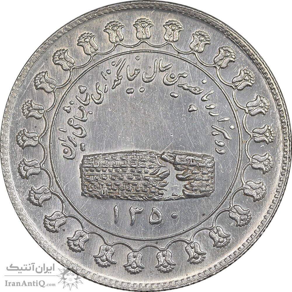 مدال یادبود نقره منشور کوروش بزرگ 1350 - AU55 - محمد رضا شاه