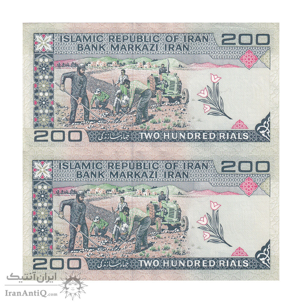 اسکناس 200 ریال (ایروانی - قاسمی) - کسر یکسان - جفت - UNC61 - جمهوری اسلامی