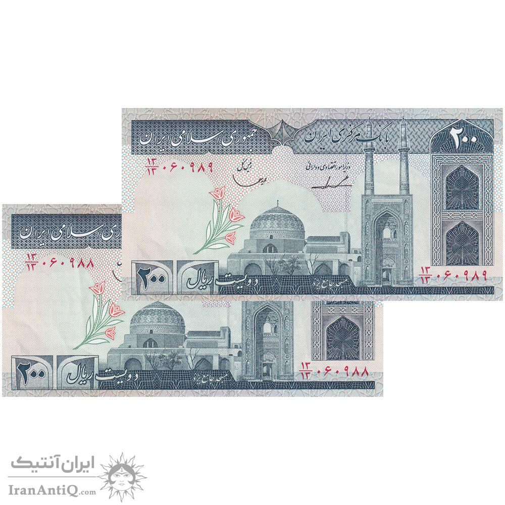 اسکناس 200 ریال (ایروانی - قاسمی) - کسر یکسان - جفت - AU55 - جمهوری اسلامی