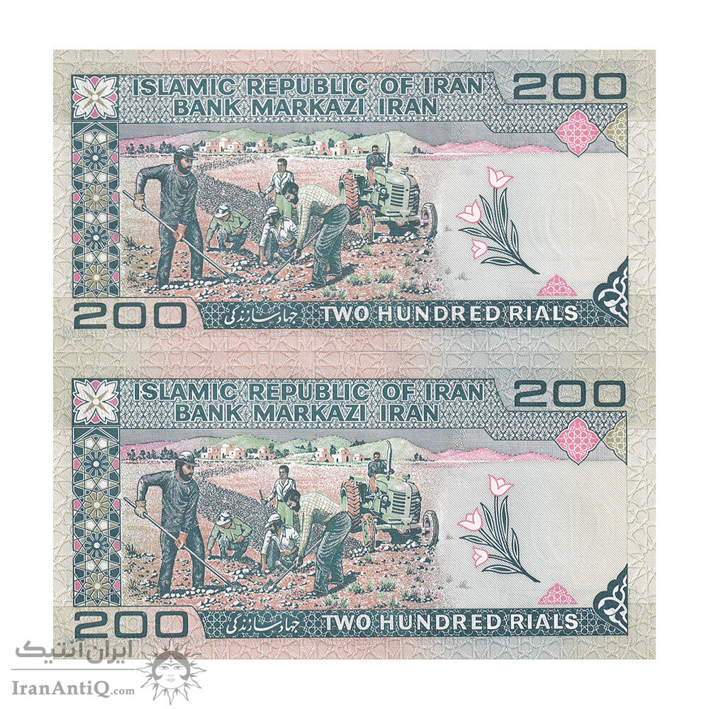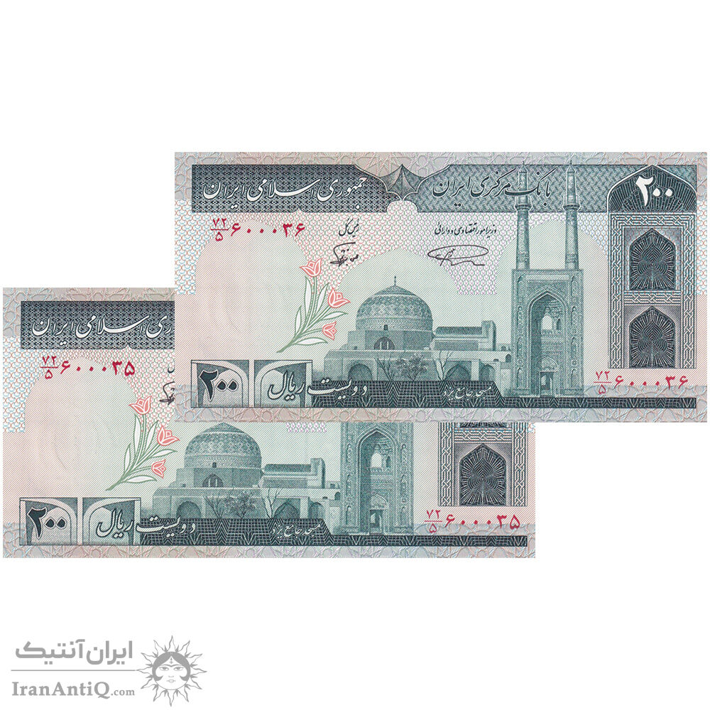 اسکناس 200 ریال (نمازی - نوربخش) فیلیگران الله - شماره بزرگ - UNC63 - جمهوری اسلامی