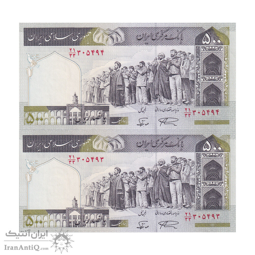 اسکناس 500 ریال (نمازی - نوربخش) فیلیگران امام - تیپ یک - نخ کامپیوتری - جایگزین - جفت - UNC63 - جمهوری اسلامی